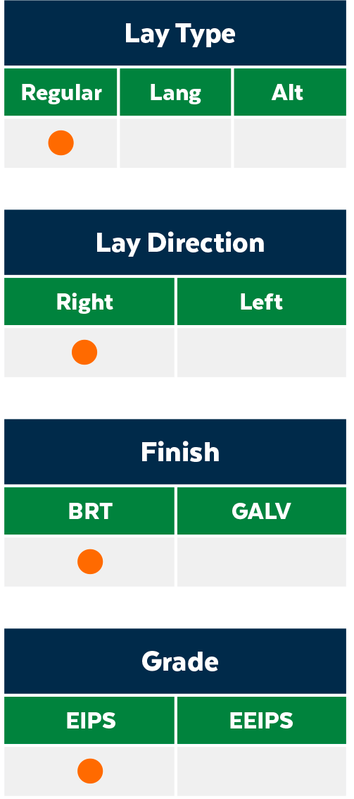 Diameter (in) Diameter (mm) Weight (Ib/ft) Minimum Breaking Force (tons for 2000 Ibs) EIPS 1960 Minimum Breaking Force (tons for 2000 Ibs) EEIPS 2160